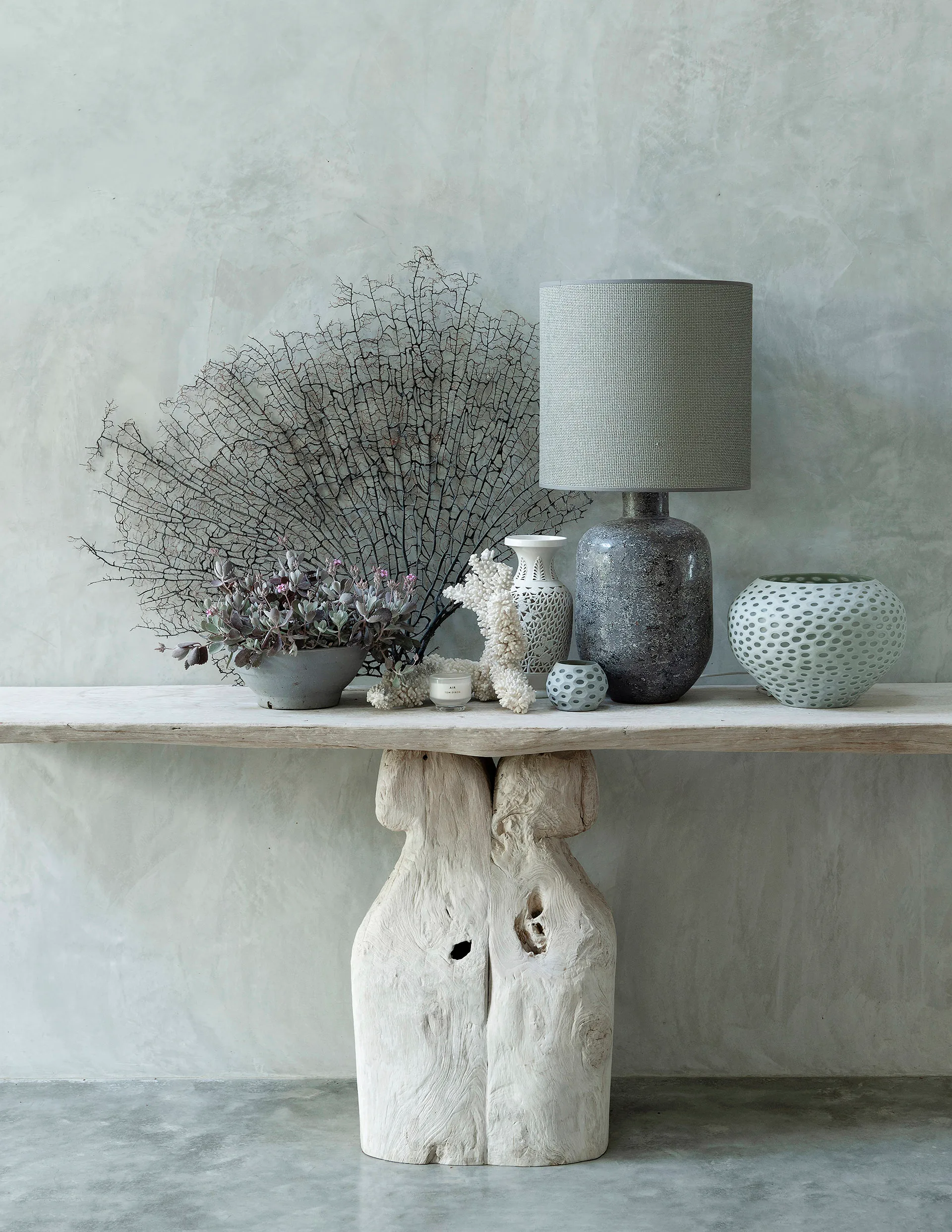 Jill and Perry’s daughter, Elissa Coleman, who is the creative director of the family’s homeware brand, sums up the overall look. “My mother wanted the interior spaces to mirror the surrounding landscape, so a coastal palette has been used throughout. A monochromatic scheme can appear flat, so she created layers of textures using soft fabrics such as linens and wools for depth and interest. The palette also forms a seamless and beautiful canvas for my family’s favourite objects and collections. And because she loves to decorate, the interior spaces are always evolving.”