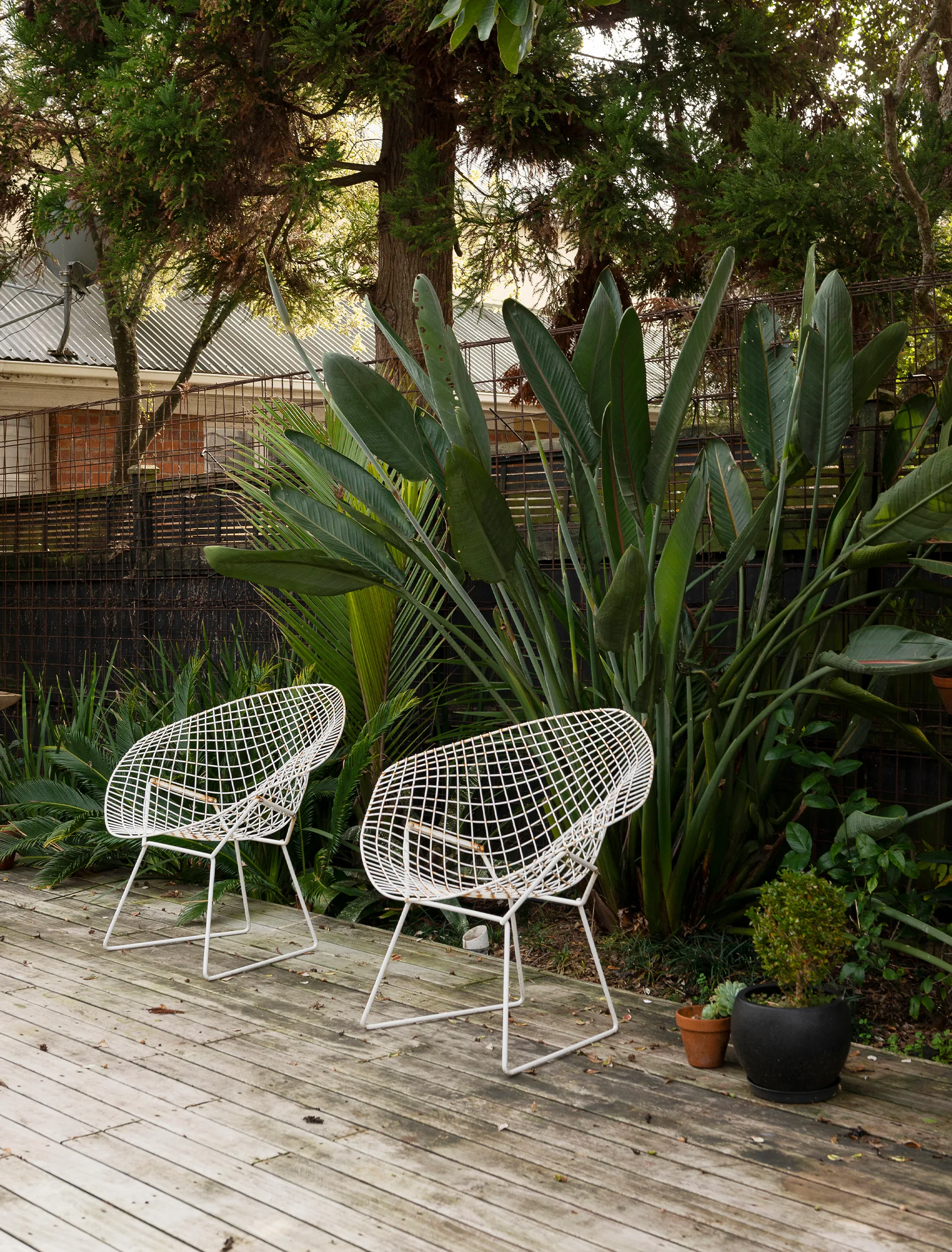 In summer Gretchen flings the doors of the kitchen open and lays a big Persian rug out on the deck to make it into an outdoor lounge. “I’m all about creating feeling in a space and that goes for the outdoors too. I mainly use the outdoor space in summer. I’ll often spend the afternoon out here while friends pop in for drinks and nibbles.”