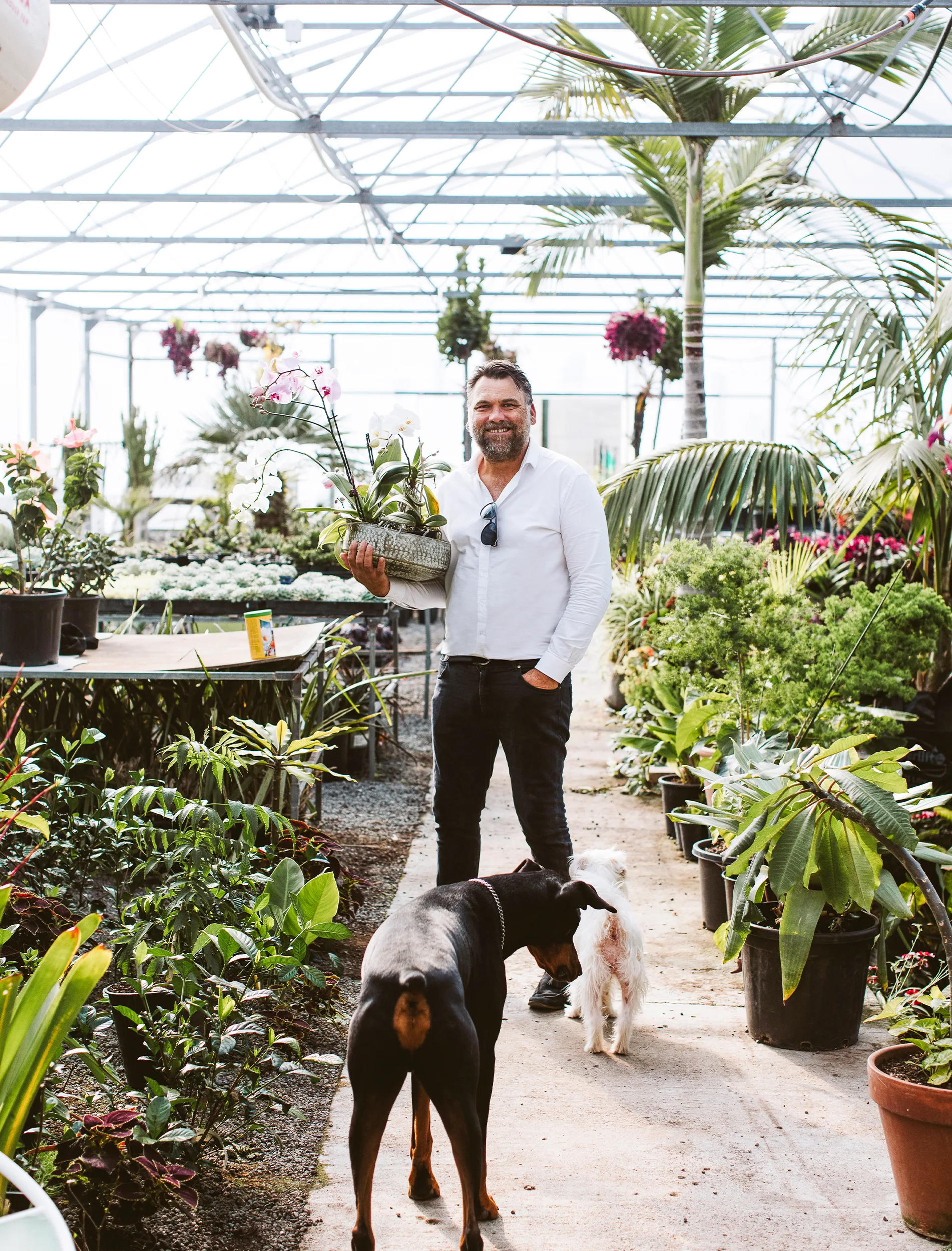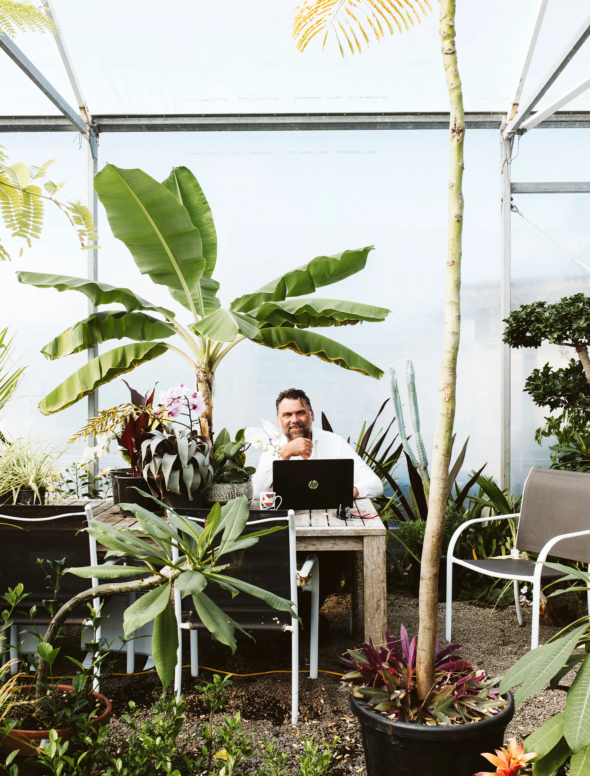 If you’re looking for Michael Mansvelt, you might find him under a palm tree surrounded by tropical and sub-tropical foliage and vibrant-coloured blooms. And no, he won’t be in some Far North hotspot or island idyll. His “happy place” is on the outskirts of New Plymouth. It’s here in one of his hothouses that he relaxes with a morning coffee, holds staff meetings and hosts mammoth dinner parties.