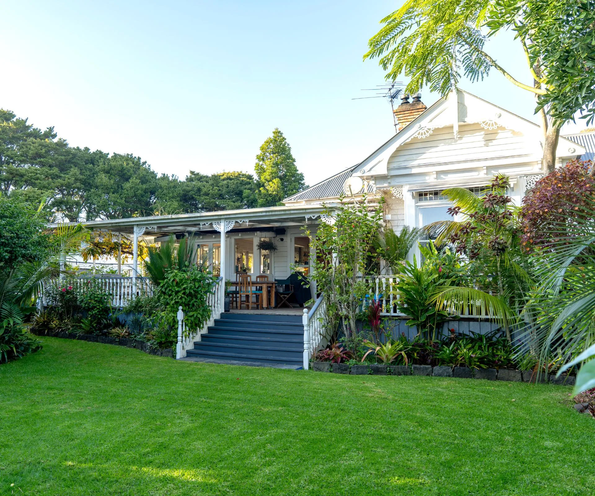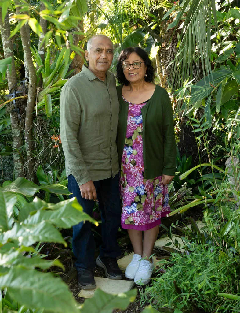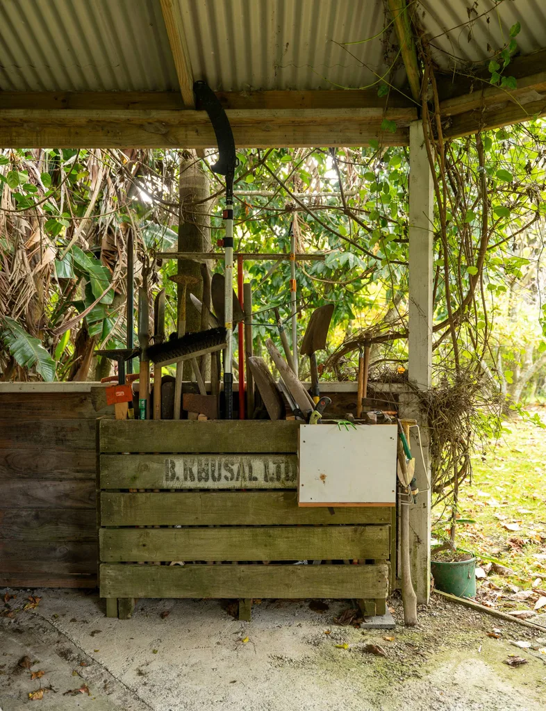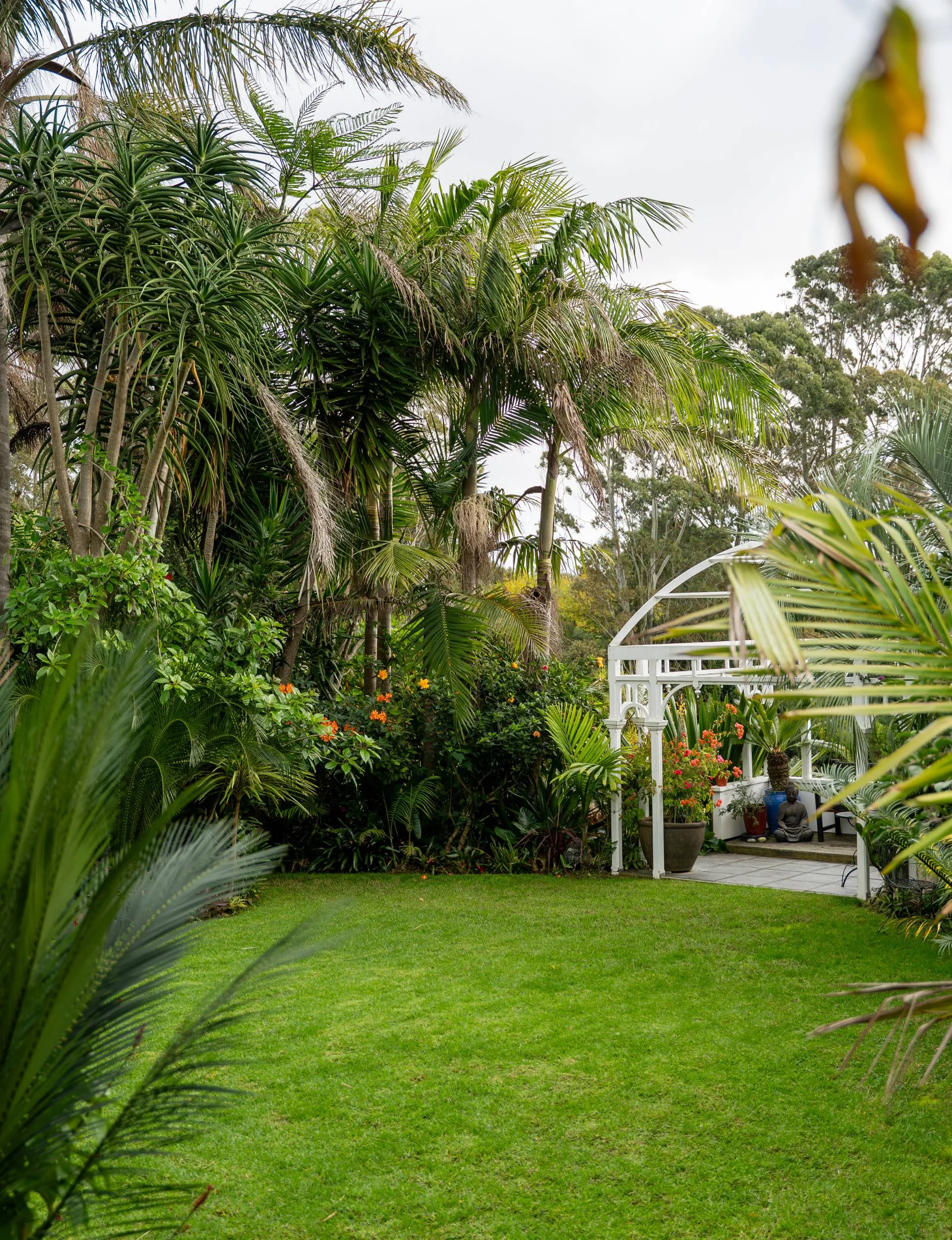 The Patels’ thoughtfully curated subtropical garden is a tribute to their love of cultivation. There are lush green pathways to explore, brightly coloured blooms, an ancient tōtara forest backing onto a stream and an eclectic orchard with unusual delights like custard apples and ice-cream beans. It’s a plant-lover’s paradise and a joy to visit.