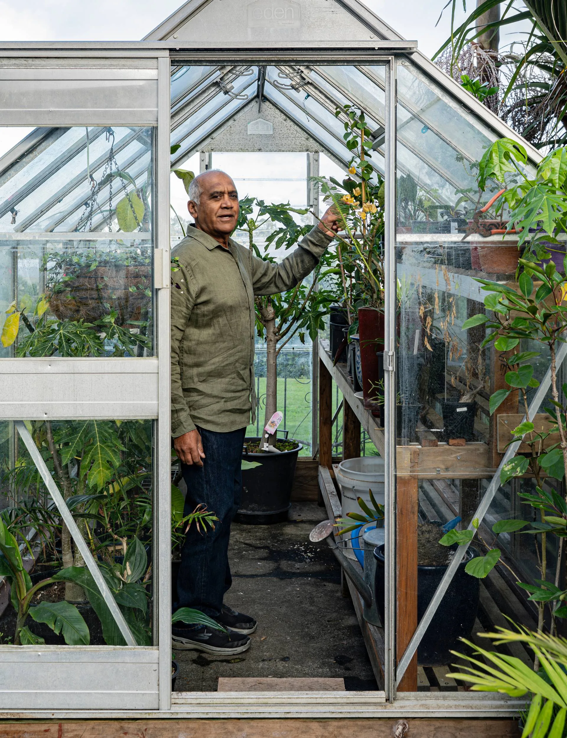 - Two glasshouses allow Mo the space to grow heat-loving plants, such as turmeric and ginger and different types of Indian beans for an extended season.