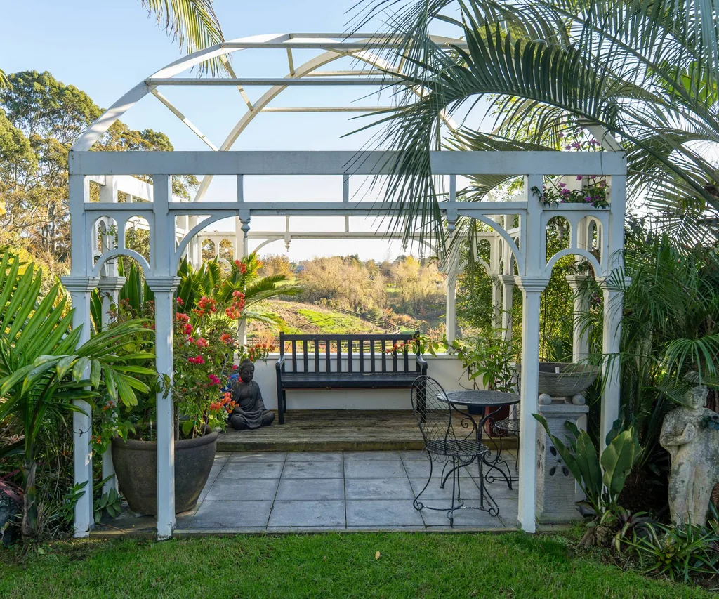 Finally, Mo had the perfect reason to construct a large, ornate Victorian pergola he’d bought from an old house in Remuera and been storing for years. He completed it just weeks out from the big day, and it’s now a pivotal feature of the garden.