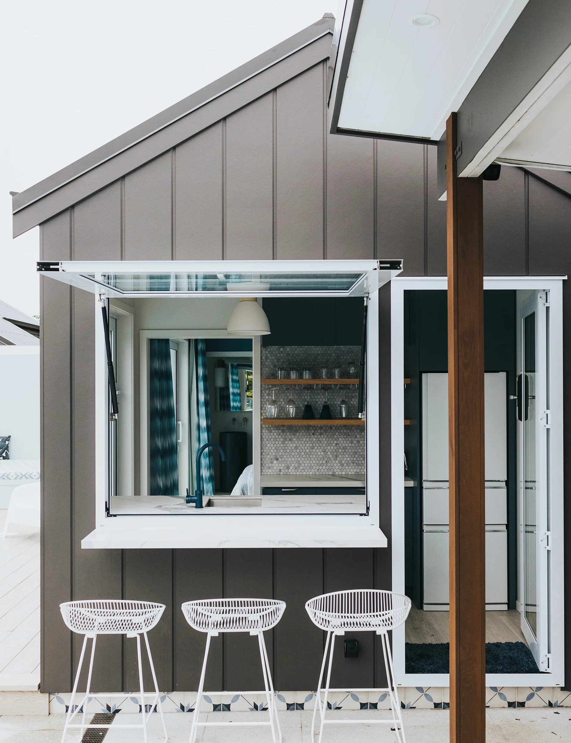 A small kitchen allows guests to be self-contained during their stay at the Berry retreat, though Annabel says it’s mostly been used to create poolside happy hour drinks.