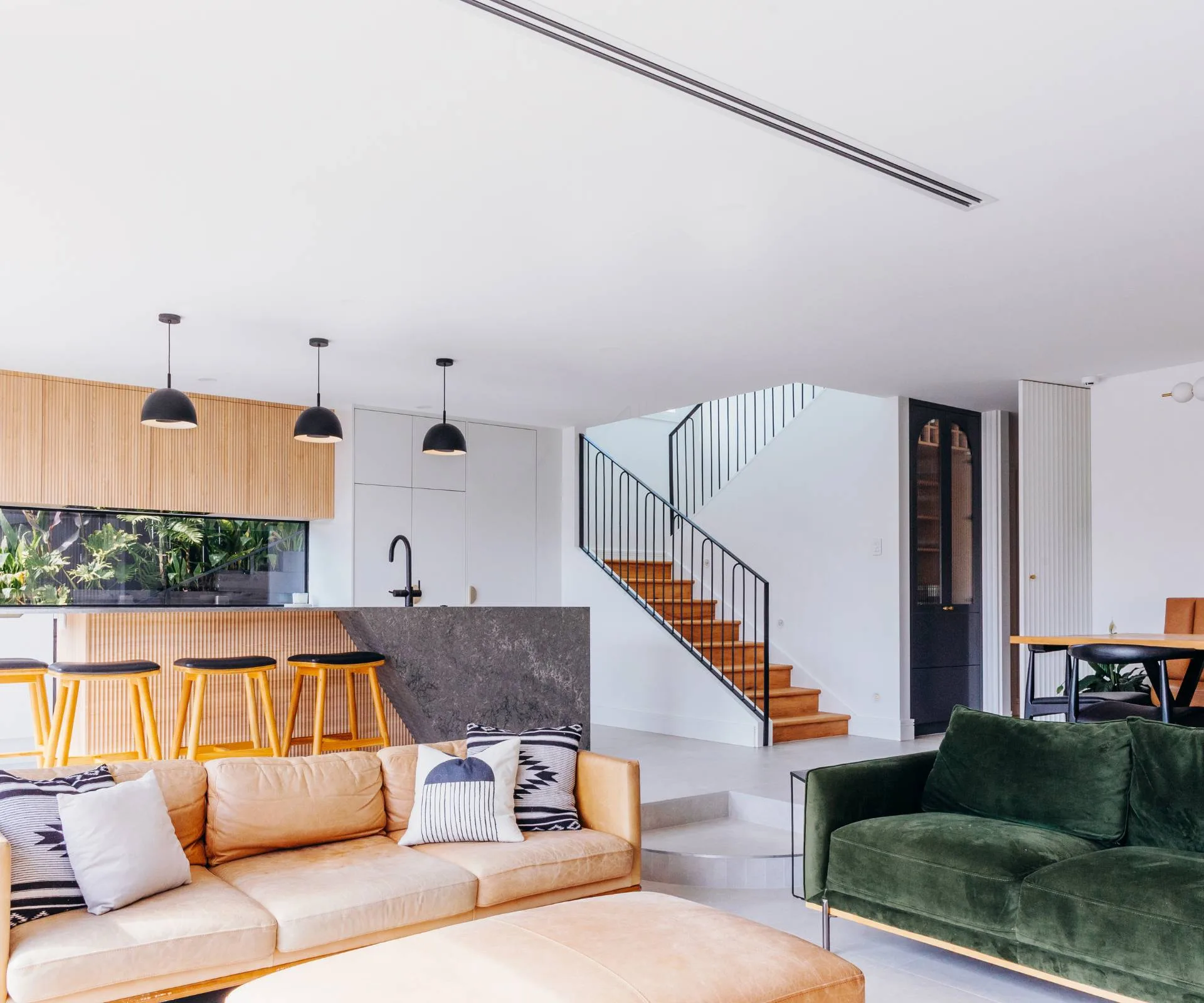 “It was Rome who suggested we flip the central stairs around so that light could get down to the lower living,” says Amanda.