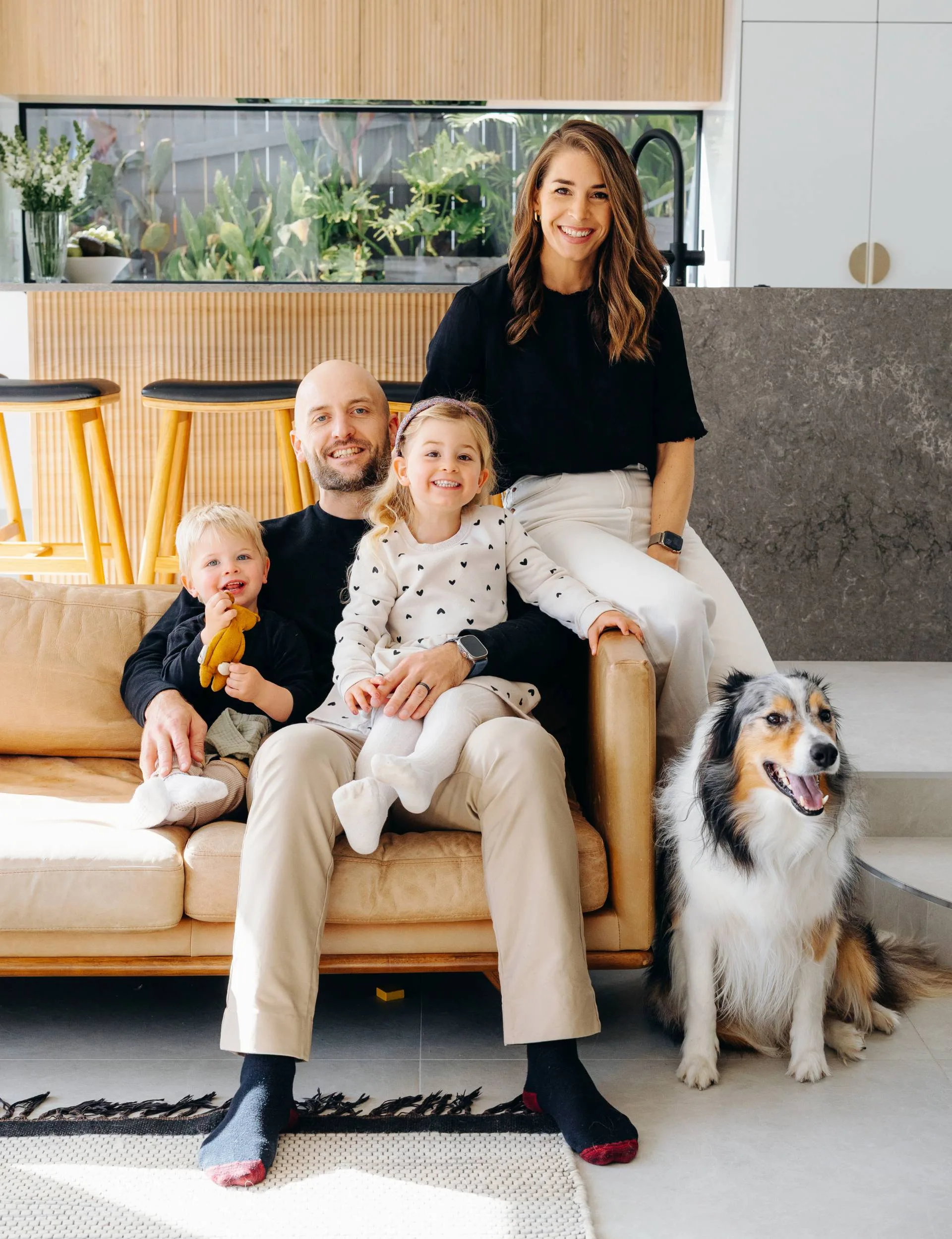 Meet & Greet: Amanda Langerak (business operations consultant and interior designer), Mike Taylor (chief technology and operations officer), daughter Emilia, four, and son Hugh, two, plus Arlo the border collie.
