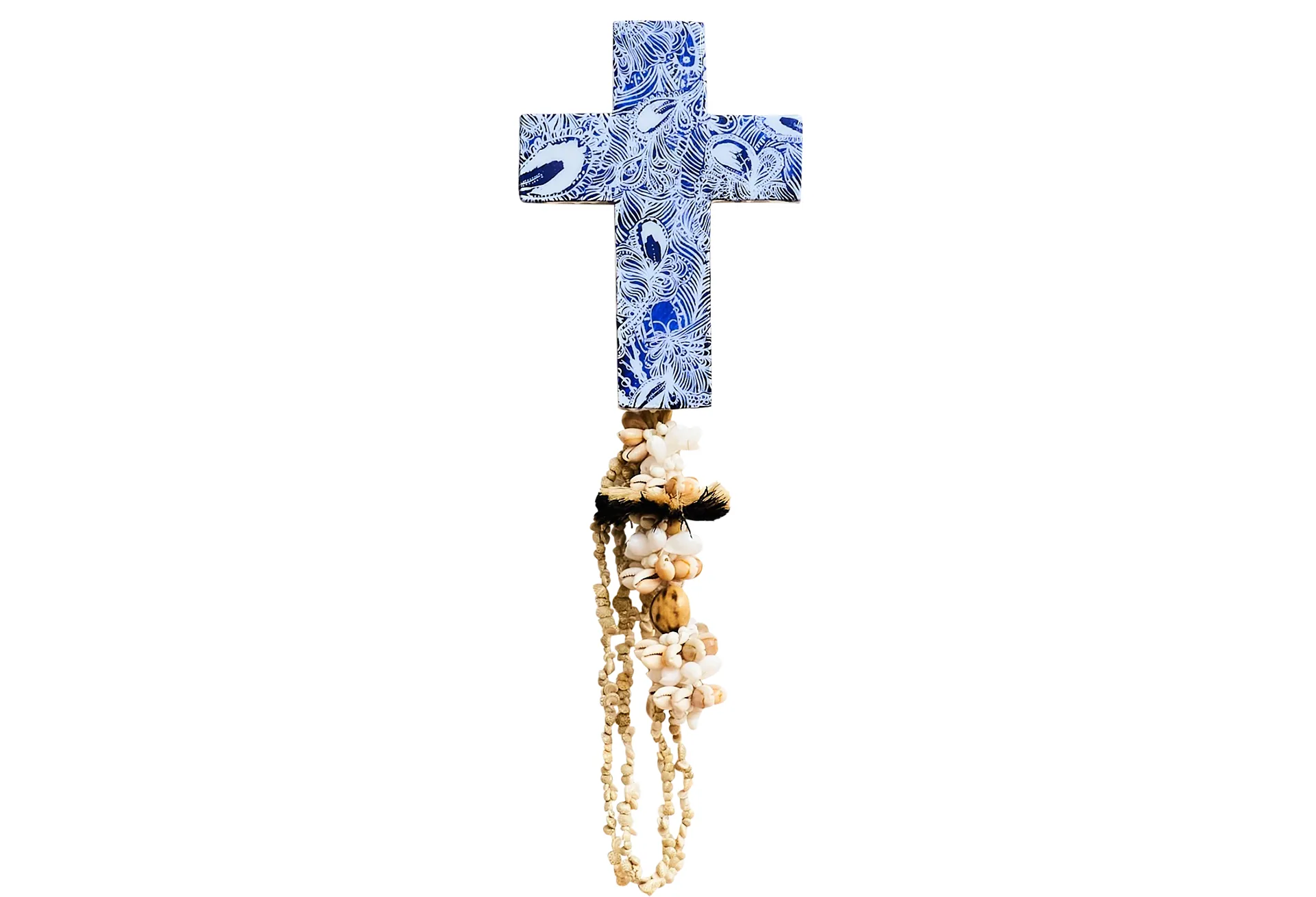 Jai Vasicek mini cross in paisley cerulean, $175, from Small Acorns