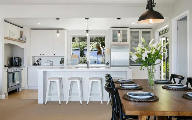 This easy-care home, situated in the sweet little village of Kinloch, is the ultimate weekend escape for any large group. With four bedrooms, this new build can fit up to eight guests and is fully fitted out to entertain with great indoor-outdoor flow.