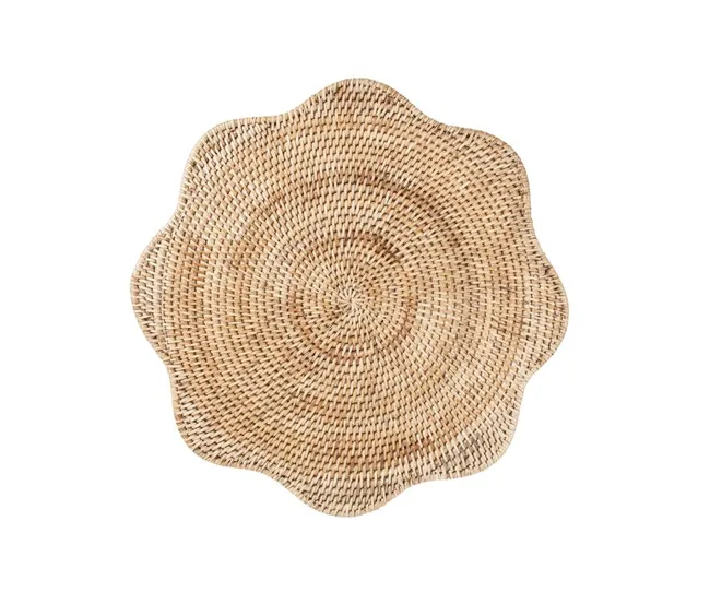 Pair your scalloped rattan pieces with natural materials like flowing linens in creamy whites for an airy, coastal vibe, or position them against a pastel palette for a playful feel.