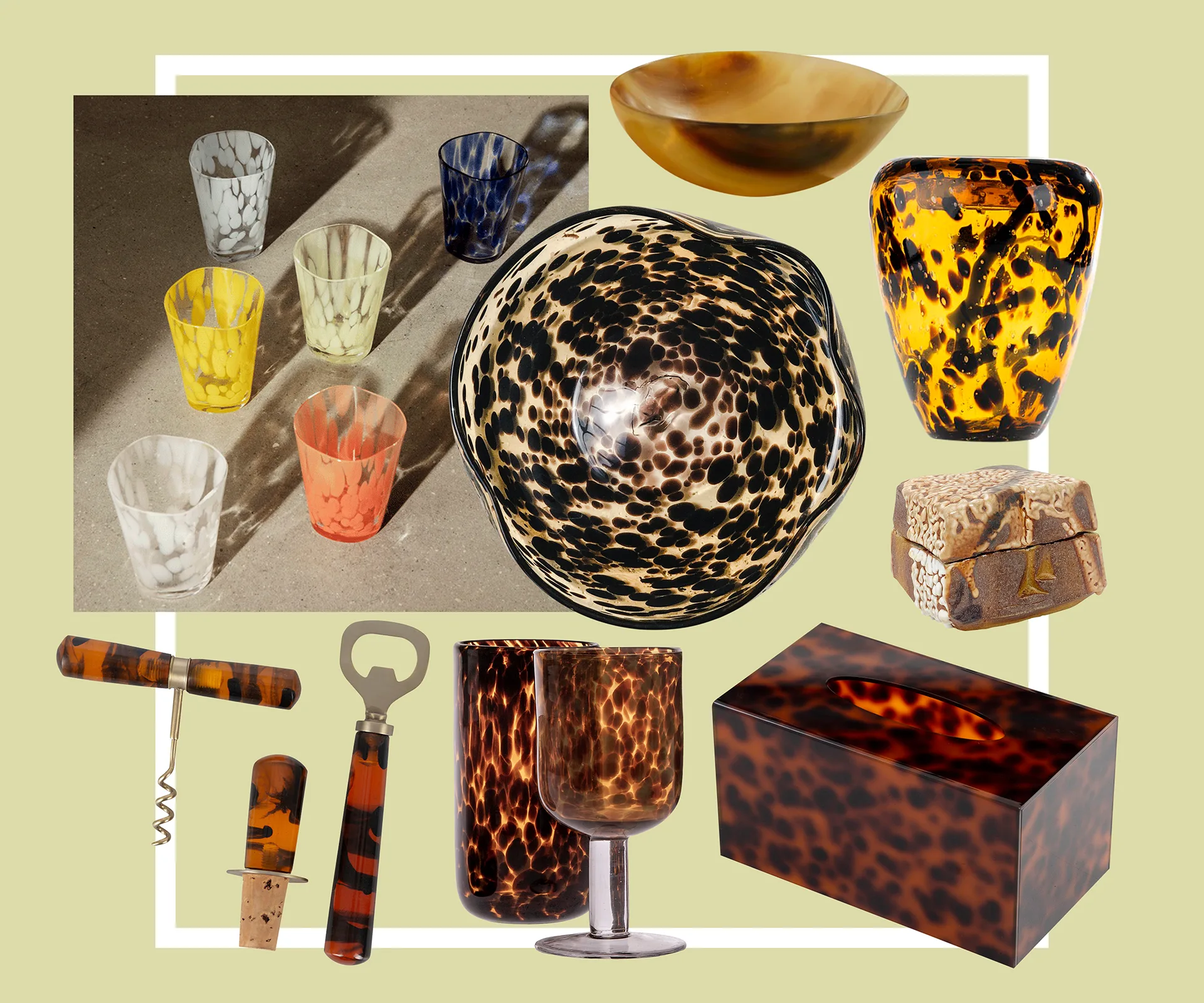 Global explorer tortoiseshell resin barware set, $46, from Amara