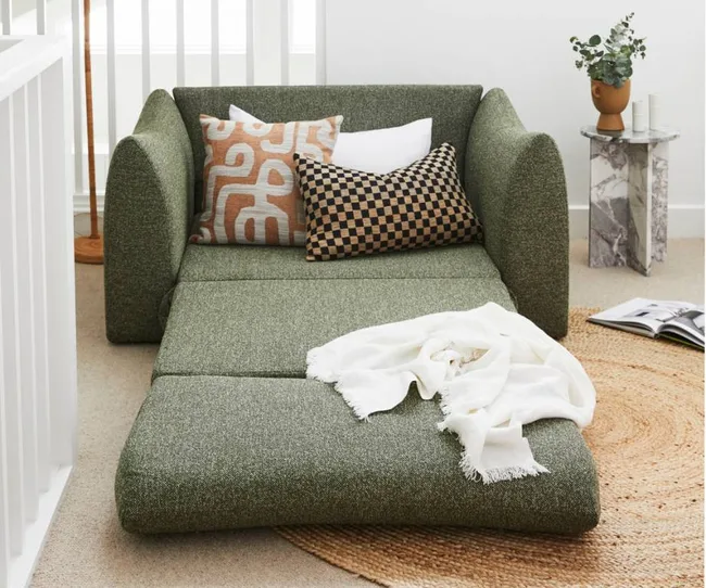 When you’re tight on space, the spare room inevitably becomes a catch-all for random things. That’s why this popular Ecosa sofa bed is a game changer, with a hidden storage compartment to keep items tucked away yet within reach.